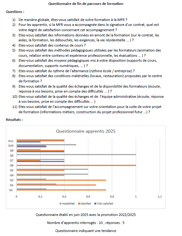 Au minimum 50% du temps annuel en entreprise durant la formation.  Et maximum 50% du temps annuel à la MFR.